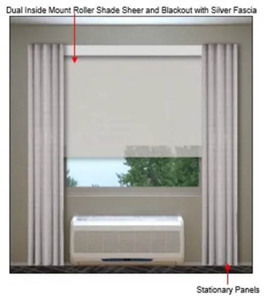 Comfort Sun Scheme Roller Shades with Sheer & Blackout Options, Stationary Panels, and Cornice